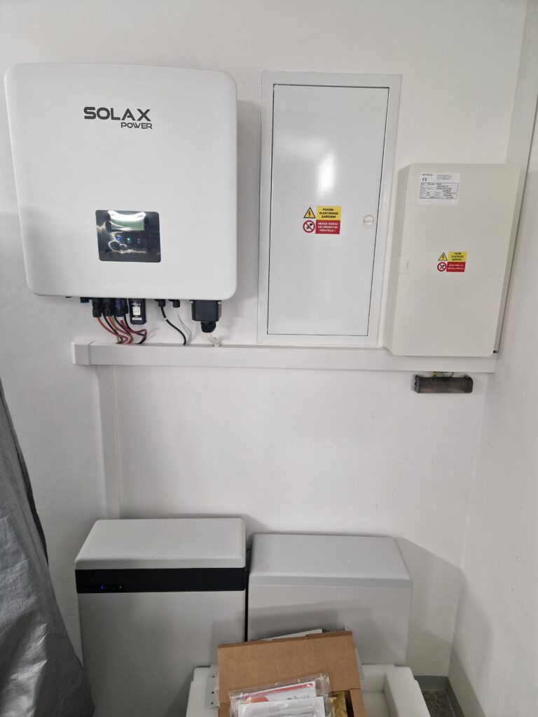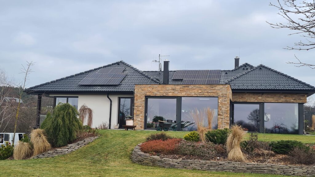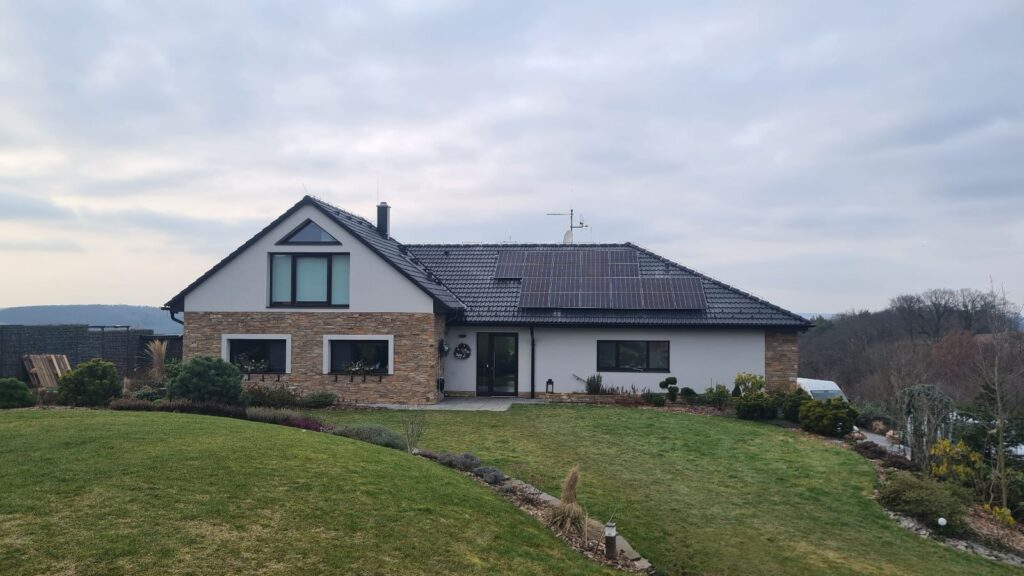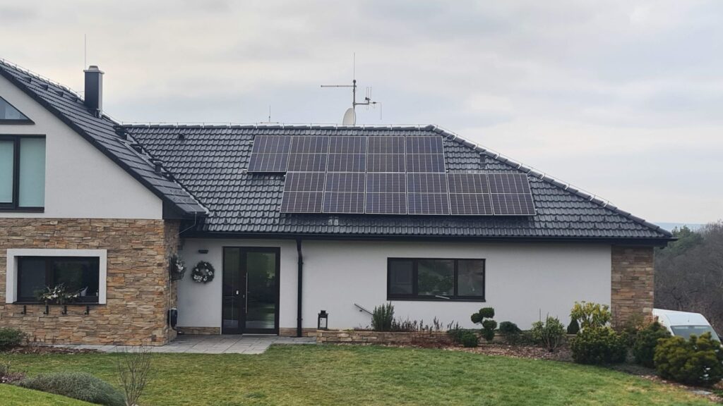 22 ks panelů o nominálním výkonu 450 Wp Panely jsou instalovány na taškové střeše