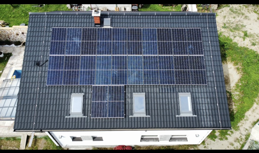 22 ks panelů o nominálním výkonu 450 Wp Panely jsou instalovány na sedlové střeše