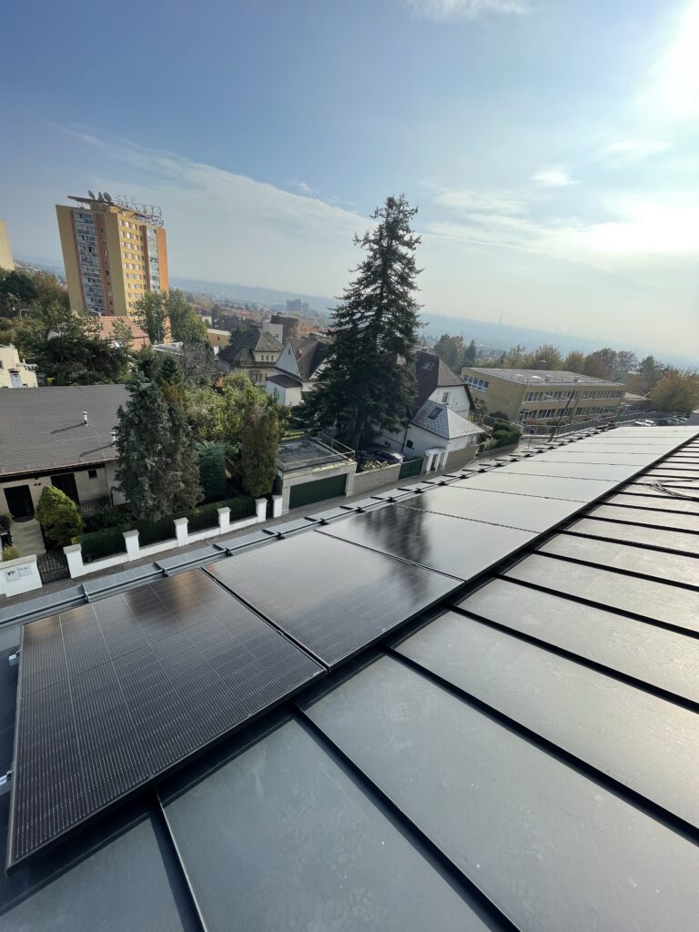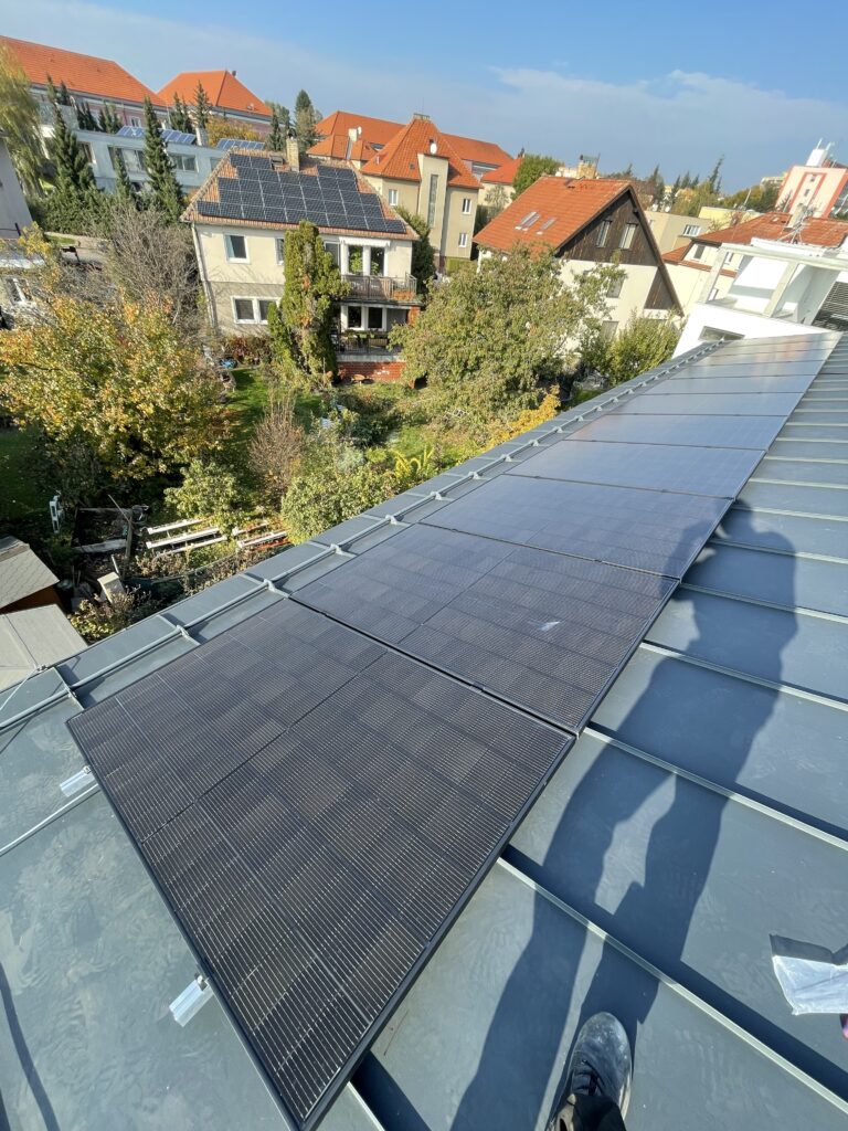 22 ks panelů o nominálním výkonu 450 Wp Panely jsou instalovány na falcované střeše